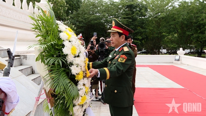 Earlier the same day, General Phan Van Giang and the high-ranking Vietnamese defense delegation laid wreaths and offered incense at Martyrs' Monument in Vientiane.