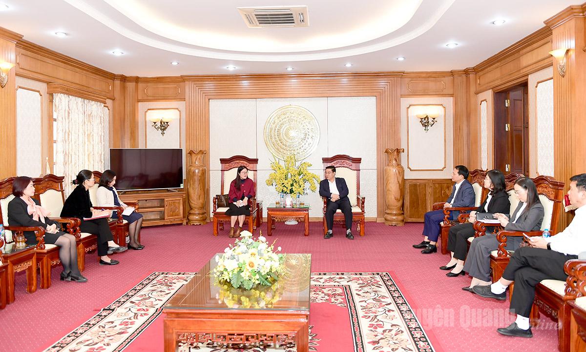 At the meeting, Vice Chairman Hoang Gia Long warmly welcomed Nghiem Viet Chung on her appointment as the new Consul General in Kunming. He expressed his confidence that the Consulate General would continue to serve as an important bridge, effectively supporting localities and promoting comprehensive cooperation between Viet Nam and China in general, and between Tuyen Quang Province and Chinese localities in particular.