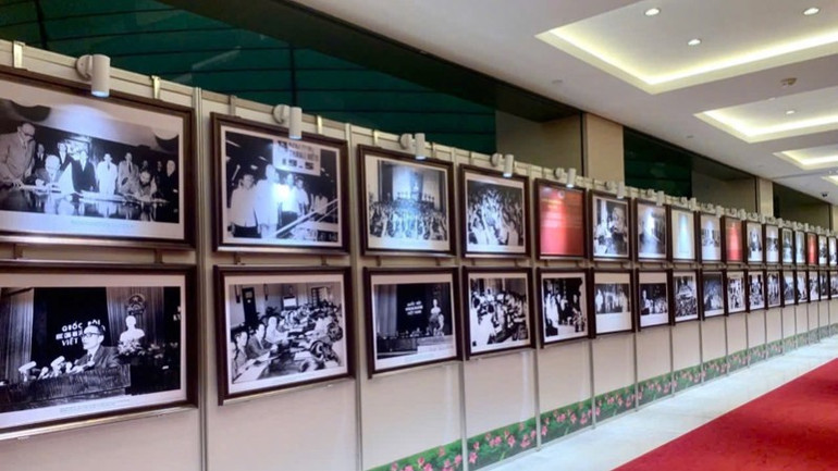 Hình ảnh, tư liệu trưng bày tại Triển lãm “Quốc hội Việt Nam-80 năm đồng hành cùng dân tộc”.