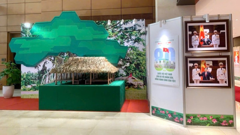 Không gian trưng bày tại Triển lãm “Quốc hội Việt Nam-80 năm đồng hành cùng dân tộc”.