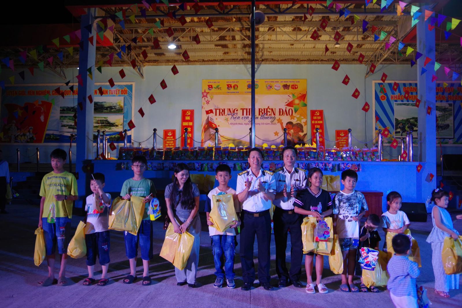 Chỉ huy Lữ đoàn 957, BTL Vùng 4 Hải quân tặng quà cho các em nhỏ trong đêm hội Trăng rằm.