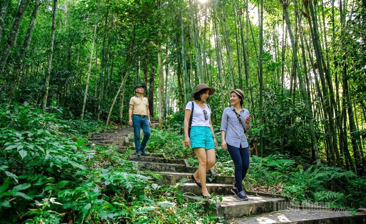 Du khách xuyên qua những tán rừng nguyên sinh để khám phá di tích danh thắng Quốc gia thác Tiên - đèo Gió