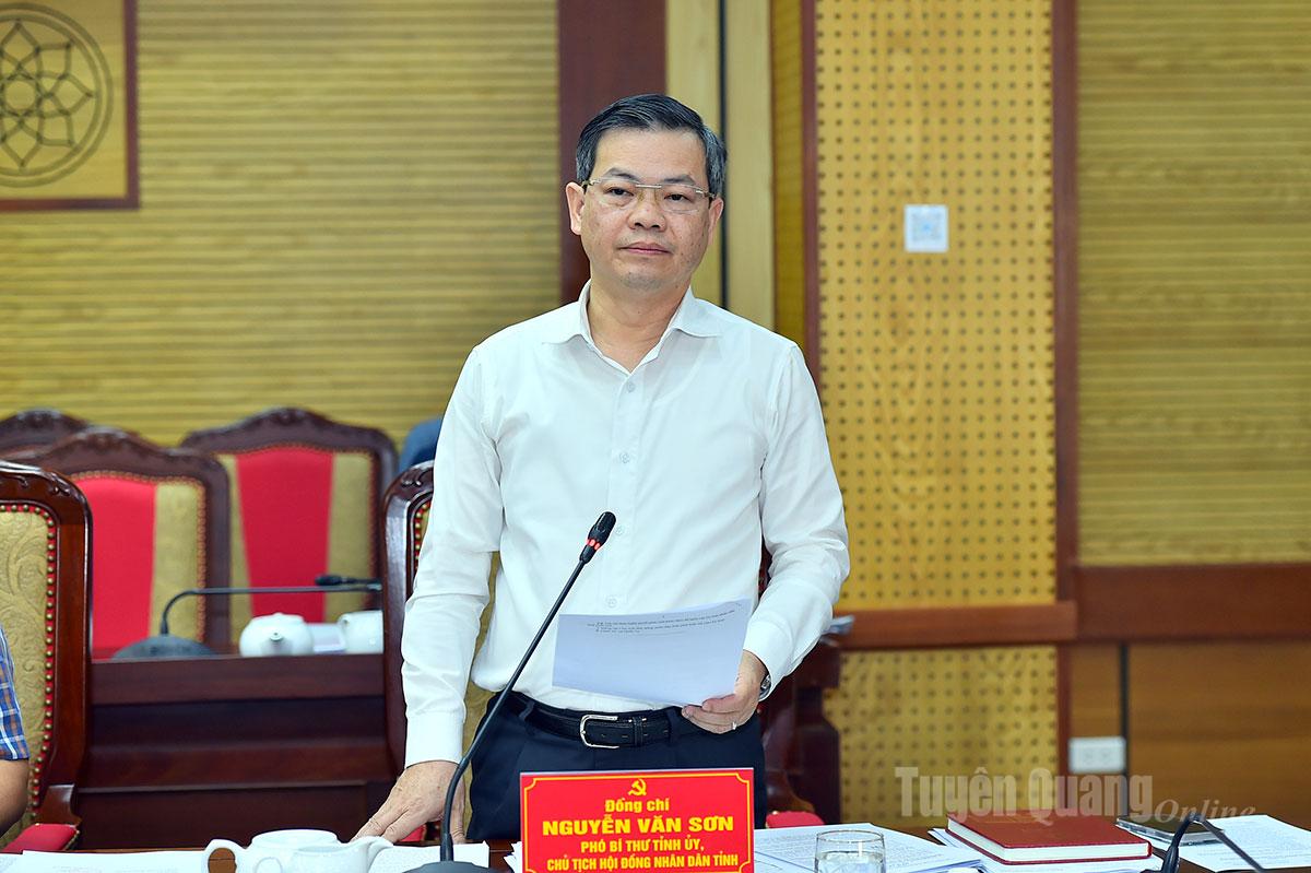 Đồng chí Phó Bí thư Tỉnh ủy, Chủ tịch HĐND tỉnh Nguyễn Văn Sơn phát biểu tại hội nghị.