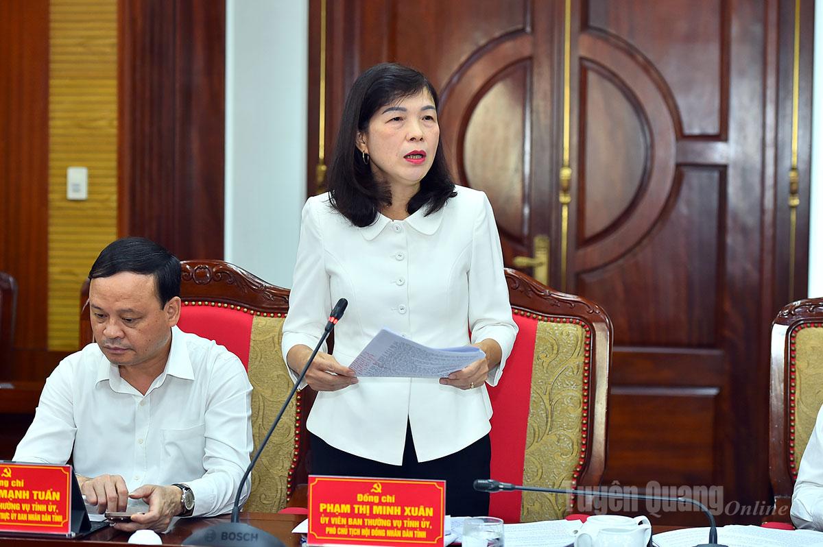 Đồng chí Phó Chủ tịch HĐND tỉnh Phạm Thị Minh Xuân phát biểu tại hội nghị.