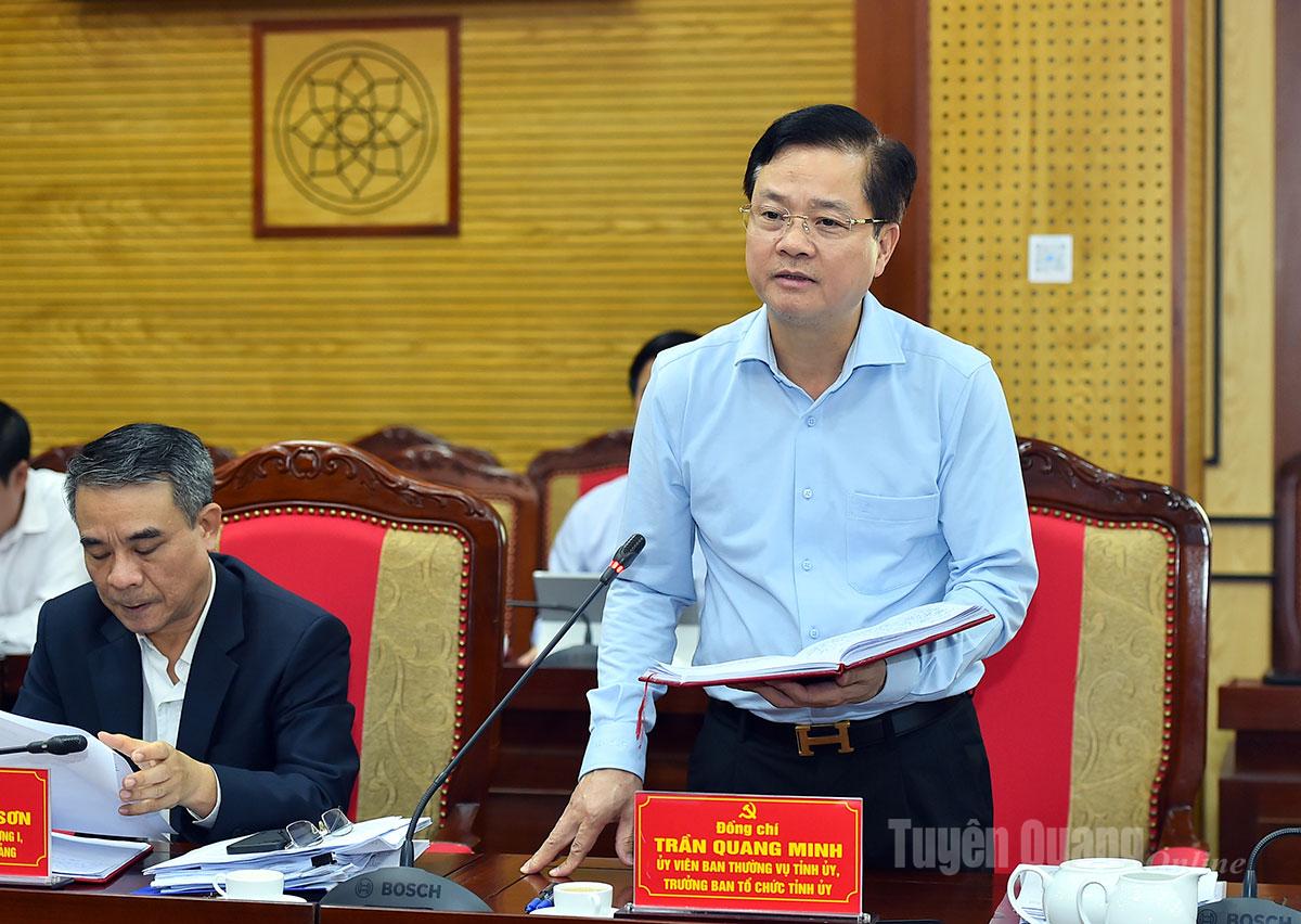 Đồng chí Trưởng Ban Tổ chức Tỉnh ủy Trần Quang Minh phát biểu ý kiến tại hội nghị.