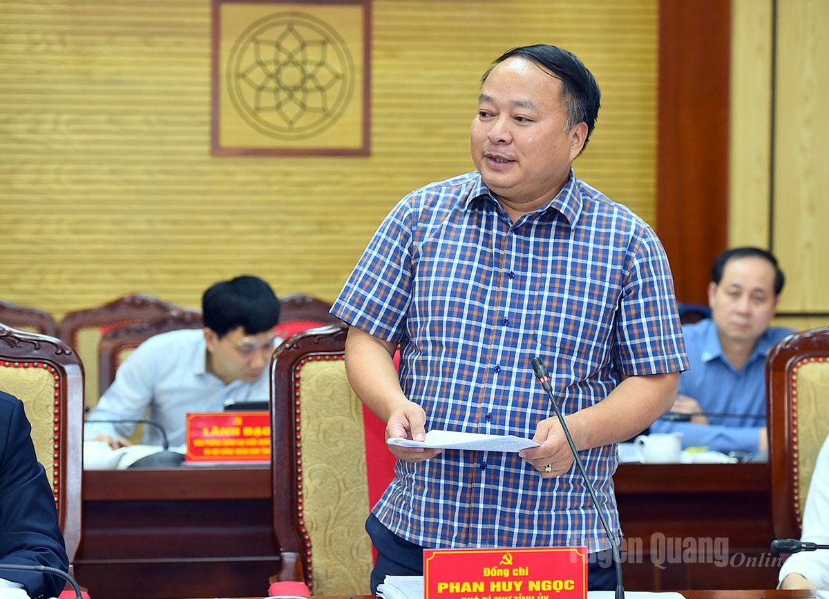 Đồng chí Phó Bí thư Tỉnh ủy, Chủ tịch UBND tỉnh Phan Huy Ngọc phát biểu tại hội nghị.