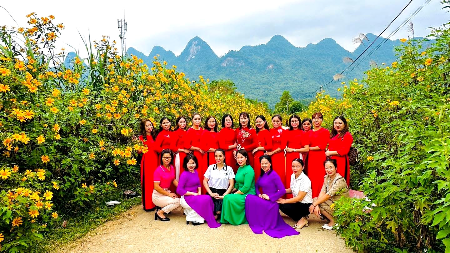 Du khách đến chụp ảnh cùng hoa Dã Quỳ.