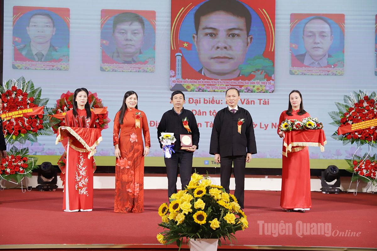 Tại Hội nghị, các đồng chí lãnh đạo tỉnh đã trao biểu trưng, tặng hoa biểu dương và chụp ảnh lưu niệm cùng 300 điển hình tiên tiến trong đồng bào các DTTS trên địa bàn tỉnh.