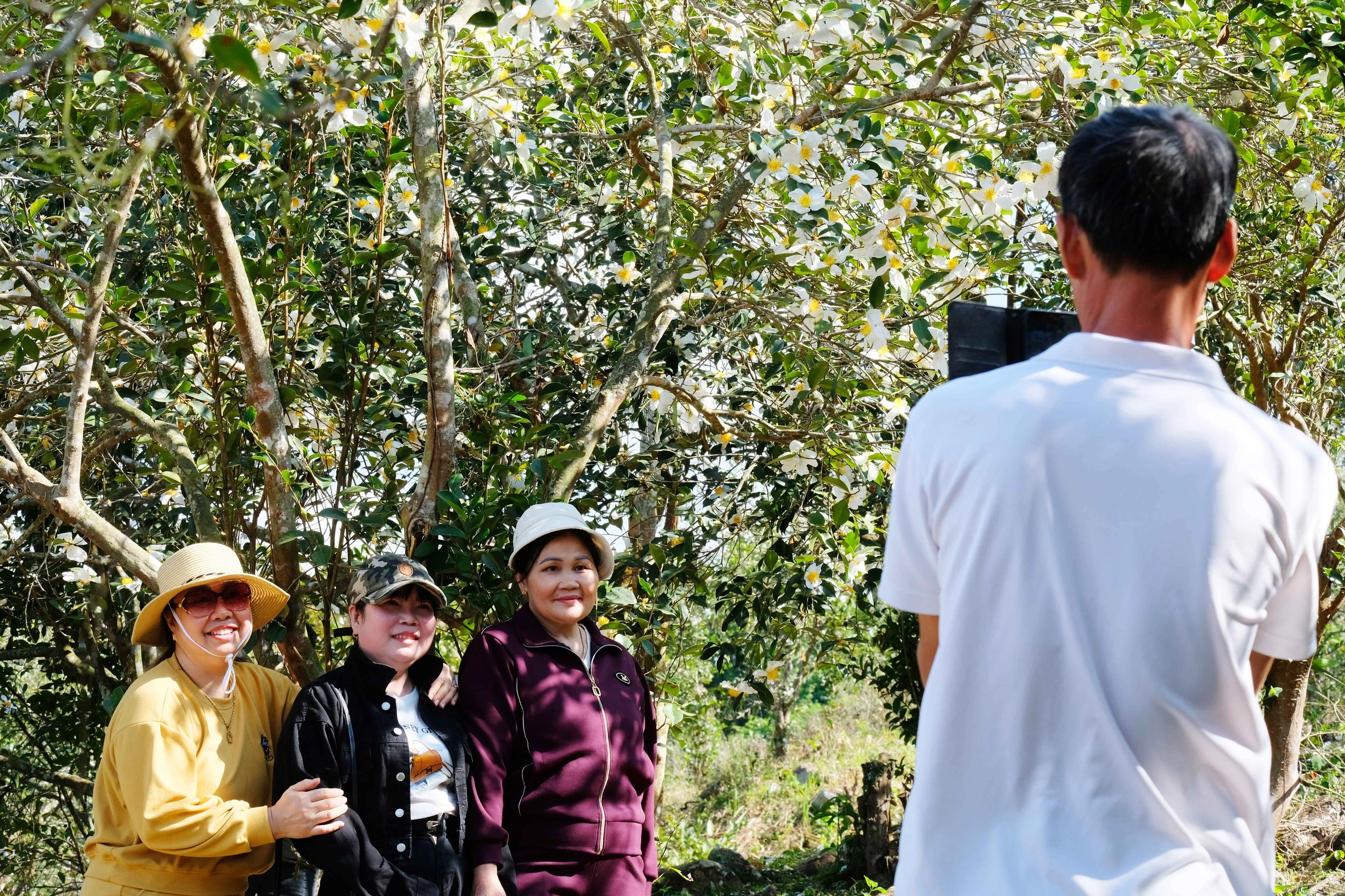 Những phút giây quây quần dưới bóng rừng sở khiến ai cũng thích thú. ẢNH: LÃ NGHĨA HIẾU