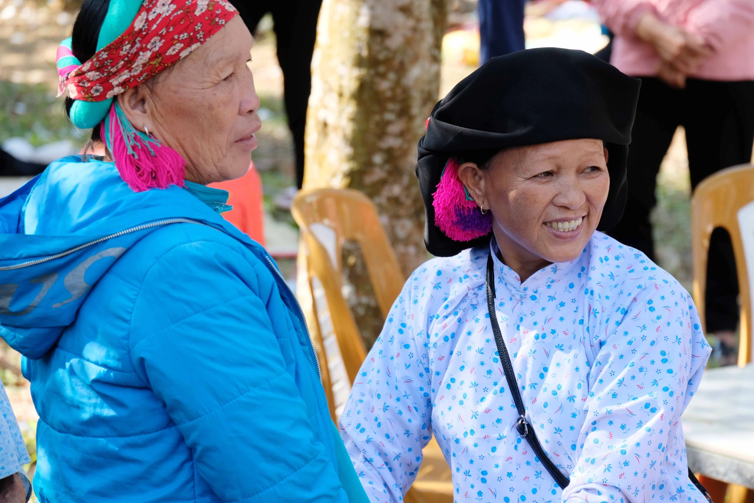 Những phụ nữ cao tuổi người dân tộc Sán Chỉ ở Bình Liêu tham dự lễ hội hoa sở. ẢNH: LÃ NGHĨA HIẾU