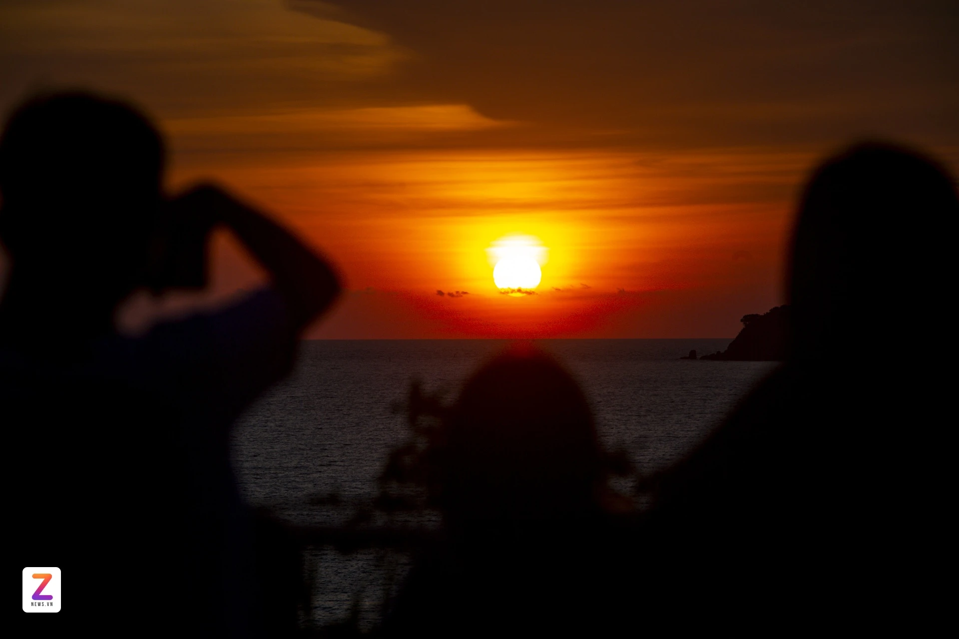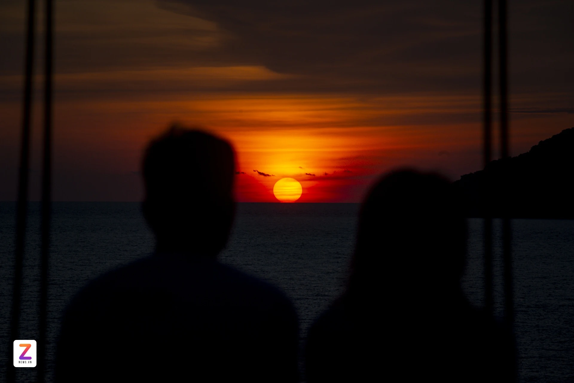 Ngắm khoảnh khắc mặt trời đỏ rực lặn dần xuống biển