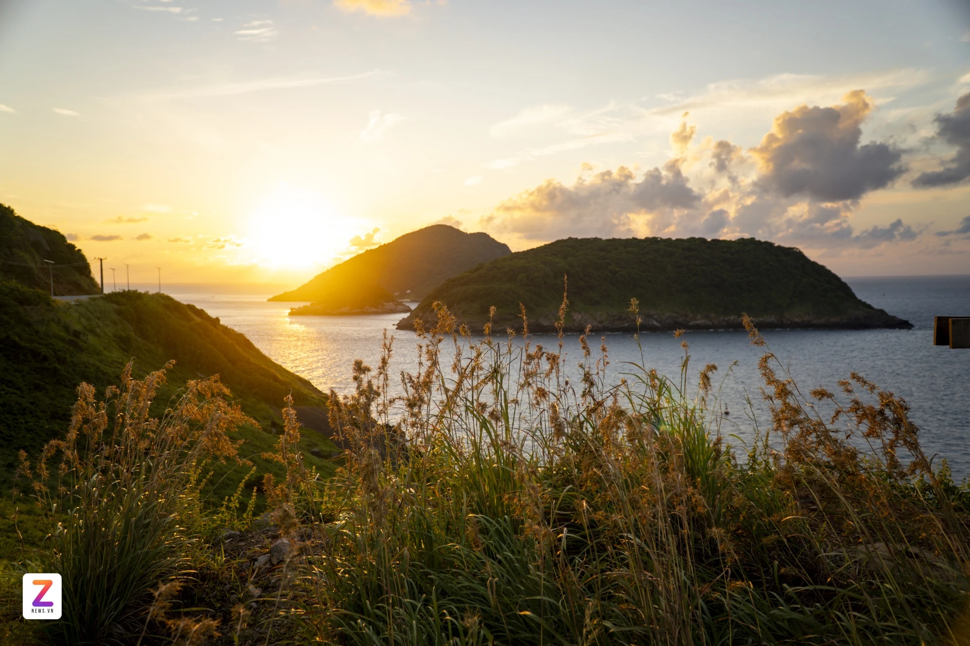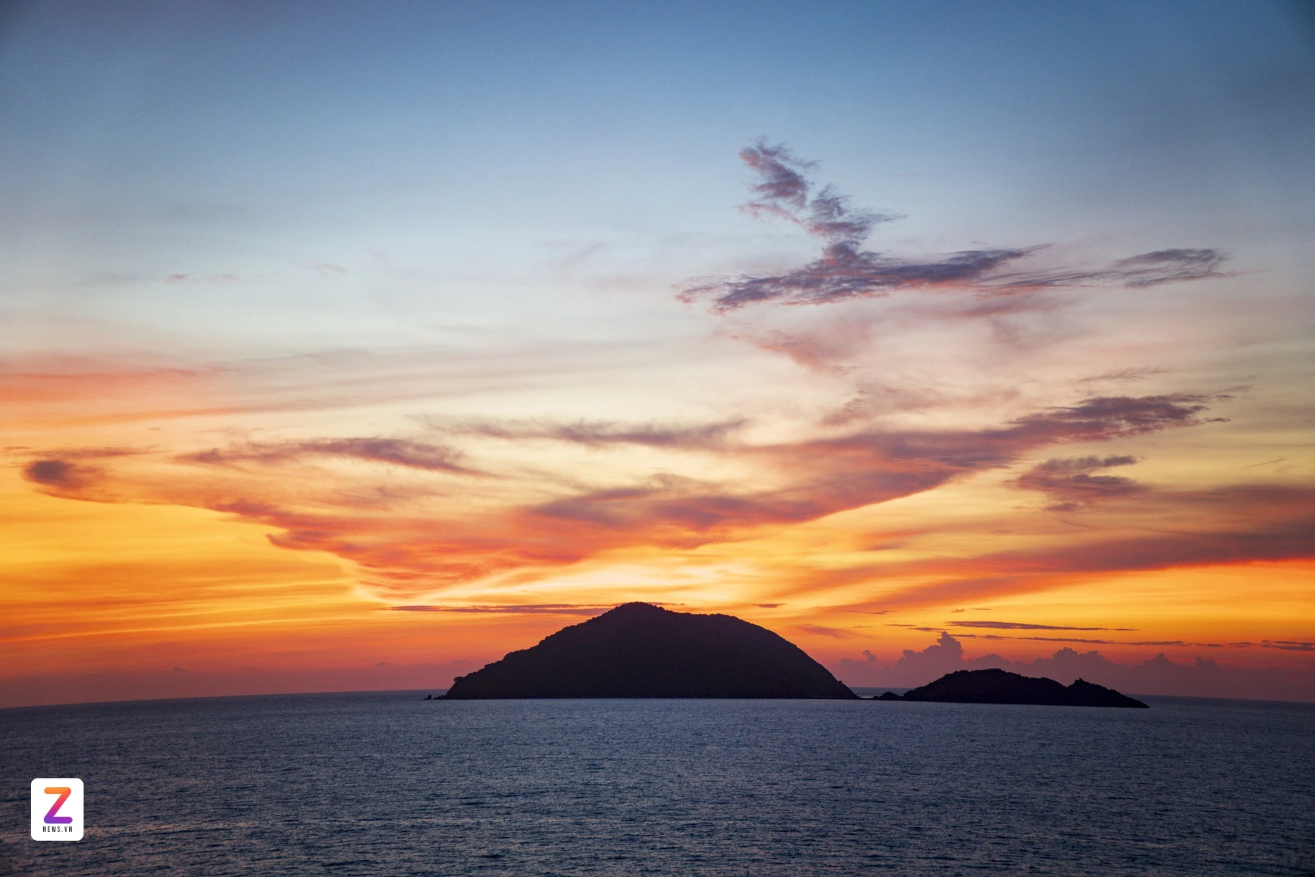 Bình minh trên đảo bắt đầu bằng màn sương mỏng phủ lên mặt biển phẳng lặng. Khi những tia nắng đầu tiên ló rạng sau rặng núi, mặt nước chuyển dần từ xám bạc sang vàng hồng, rồi ánh lên sắc xanh ngọc trong vắt. Từng đoàn thuyền đánh cá trở về sau đêm ra khơi, in bóng trên nền trời rực sáng, tạo nên bức tranh sinh động nhưng bình yên đến lạ.