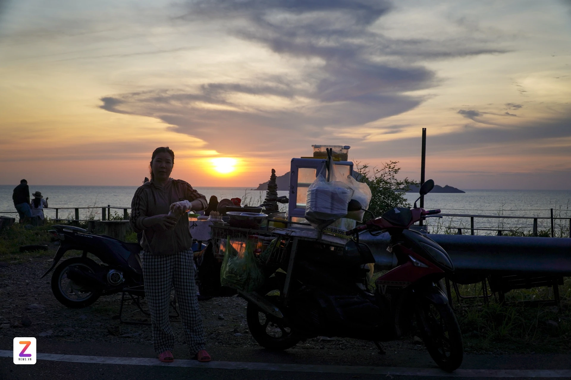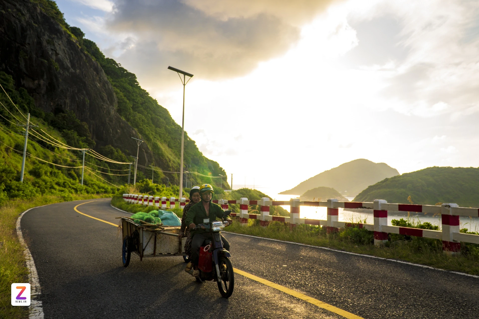 Khi mặt trời dần khuất sau những ngọn núi, bầu trời chuyển sang dải màu cam, tím và đỏ rực rỡ, phản chiếu trên mặt biển lăn tăn sóng. Trên con đường ven biển uốn lượn quanh đảo, nhiều du khách dừng xe, ngồi lặng nhìn mặt trời chìm dần xuống đường chân trời, để lại ánh sáng dịu cuối ngày phủ lên những hàng dừa nghiêng mình trong gió. Không ít cặp đôi chọn khoảnh khắc ấy để tản bộ, nắm tay nhau đi dọc bờ cát, cảm nhận vẻ đẹp lãng mạn và tĩnh tại hiếm nơi nào có được.