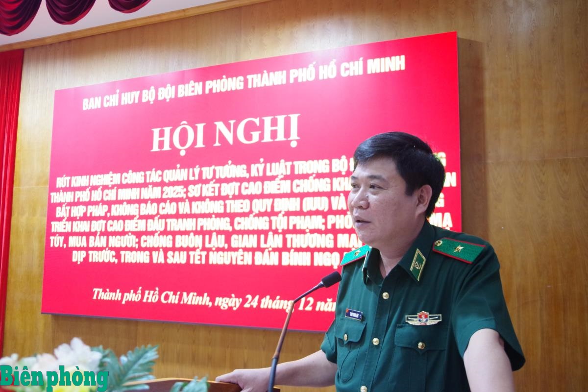Chỉ huy trưởng Ban Chỉ huy Bộ đội Biên phòng thành phố phát biểu tại hội nghị. Ảnh: Quang Tiến