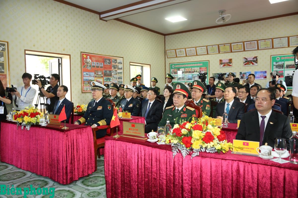 và Thượng tướng Đổng Quân, Bộ trưởng Bộ Quốc phòng Trung Quốc cùng các đại biểu dự buổi thăm Đồn Biên phòng Trà Cổ.