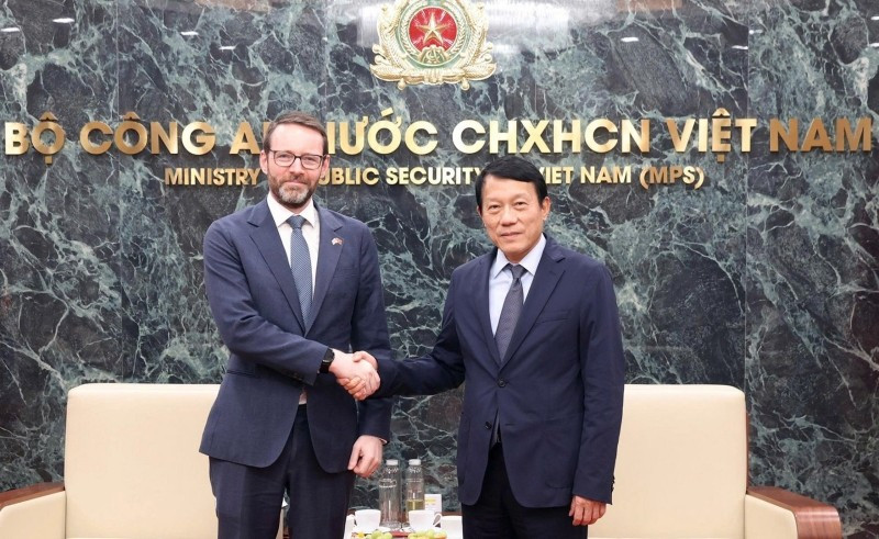 Bộ trưởng Công an Lương Tam Quang tiếp Đại sứ Vương quốc Anh tại Việt Nam Iain Frew. (Ảnh: Bộ Công an)
