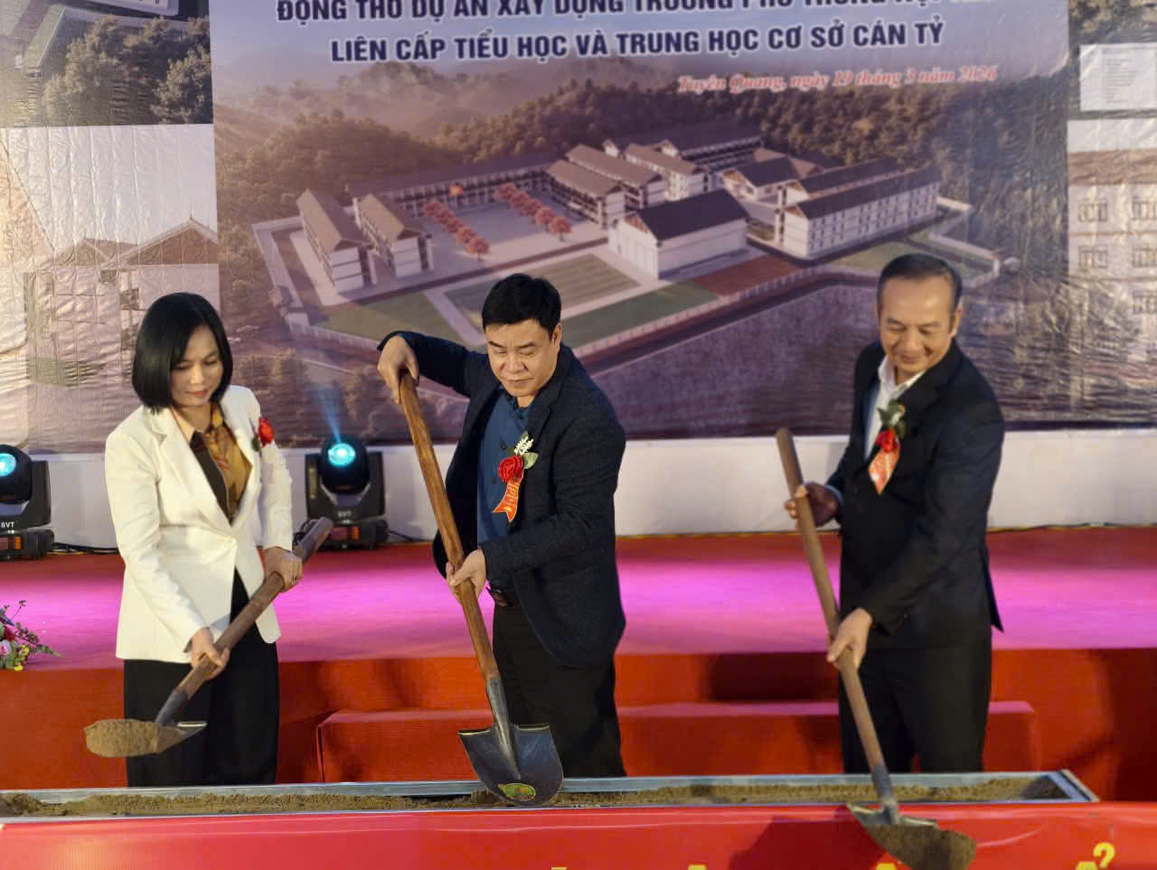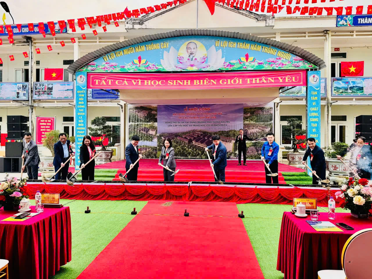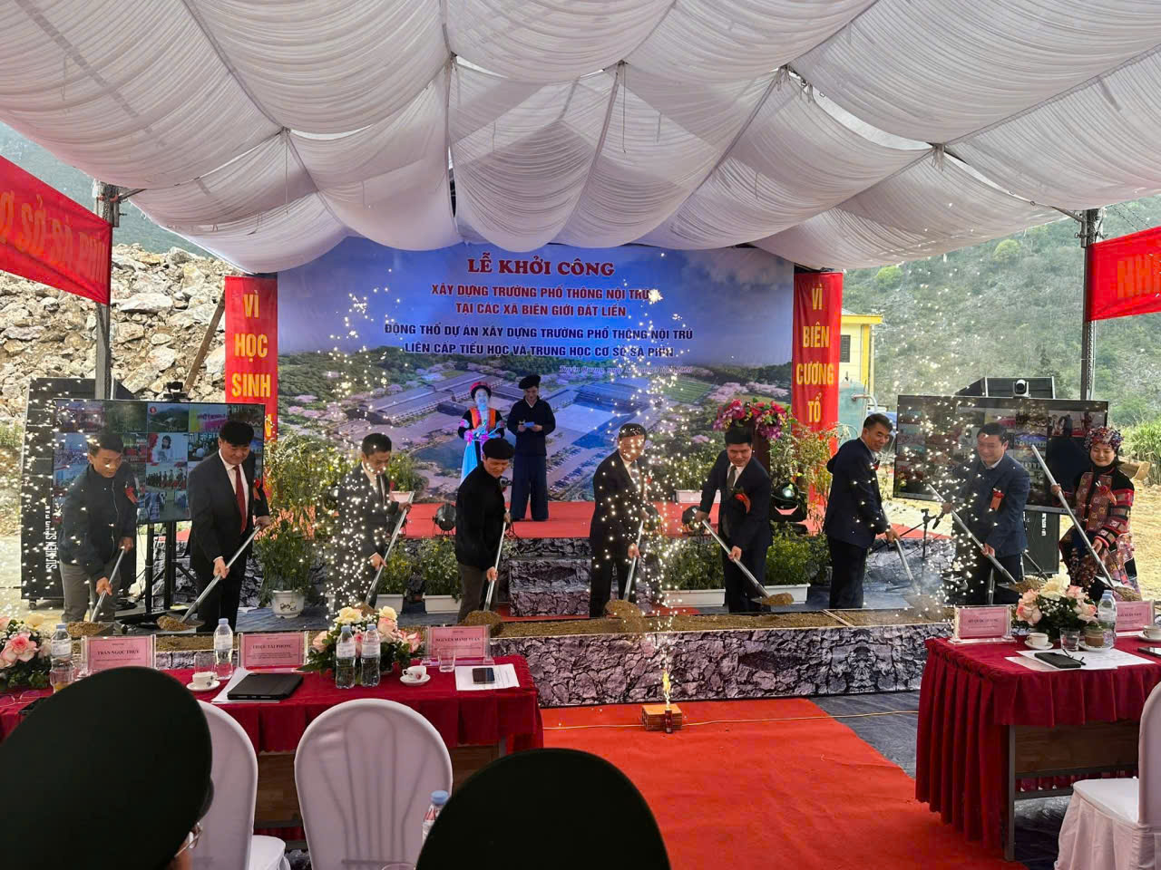 và thực hiện nghi lễ động thổ xây dựng Dự án trường Phổ thông nội trú liên cấp Tiểu học và Trung học cơ sở Sà Phìn