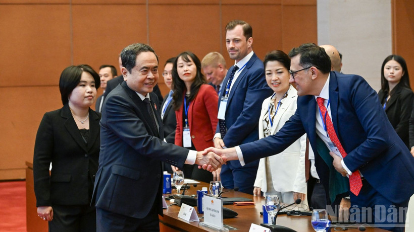 Phát biểu tại cuộc tiếp, Chủ tịch Quốc hội Trần Thanh Mẫn nhấn mạnh, Việt Nam coi Liên minh châu Âu và cộng đồng doanh nghiệp châu Âu-ASEAN là những đối tác quan trọng trong tiến trình phát triển kinh tế-thương mại và hội nhập quốc tế sâu rộng, thực chất, hiệu quả.