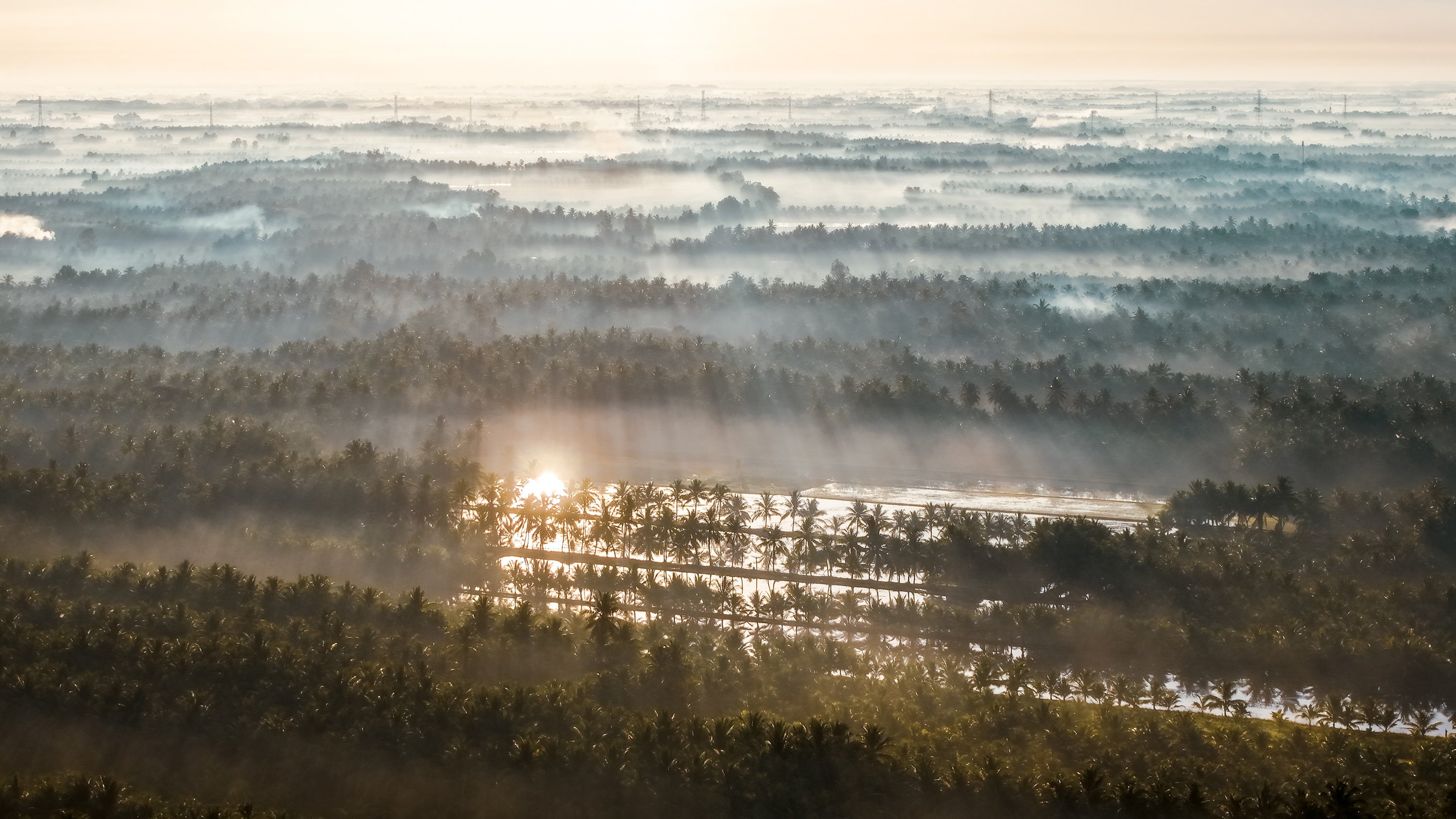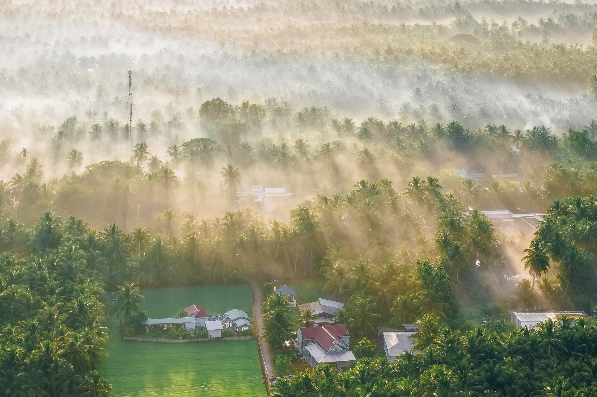 Mỗi cuối tuần, Nguyễn Thanh Tuấn (39 tuổi, quê Vĩnh Long) đều thức dậy từ 5h30, bước ra vườn dừa sau nhà. Anh gọi đó là "khoảnh khắc đẹp và thoải mái nhất của một ngày ở quê", khi không khí trong lành, sương mù phủ mờ mặt sông và ánh nắng đầu tiên len qua những tán lá dừa xanh mướt. Những khung hình mộc mạc tái hiện cảnh làng quê gần như không đổi sau hàng chục năm: vườn dừa, ruộng lúa, con sông, người hàng xóm gánh lúa, những chiếc ghe chở dừa chạy qua lại tấp nập. Để chụp được một buổi sớm đẹp, Tuấn thường phải quan sát thời tiết từ hôm trước. Trước ngày chụp, trời phải có mưa nhẹ, sáng hôm sau nắng và không gió thì mới có sương. "Nhà tôi và bà con xung quanh đều trồng dừa. Nhà cửa thưa thớt, kênh mương chằng chịt nên sáng sớm lúc nào cũng se lạnh và nhiều sương. Tôi thích cảm giác ấy, nó khiến mình thấy mình thật sự đang sống giữa thiên nhiên", Tuấn kể với Tri Thức - Znews.