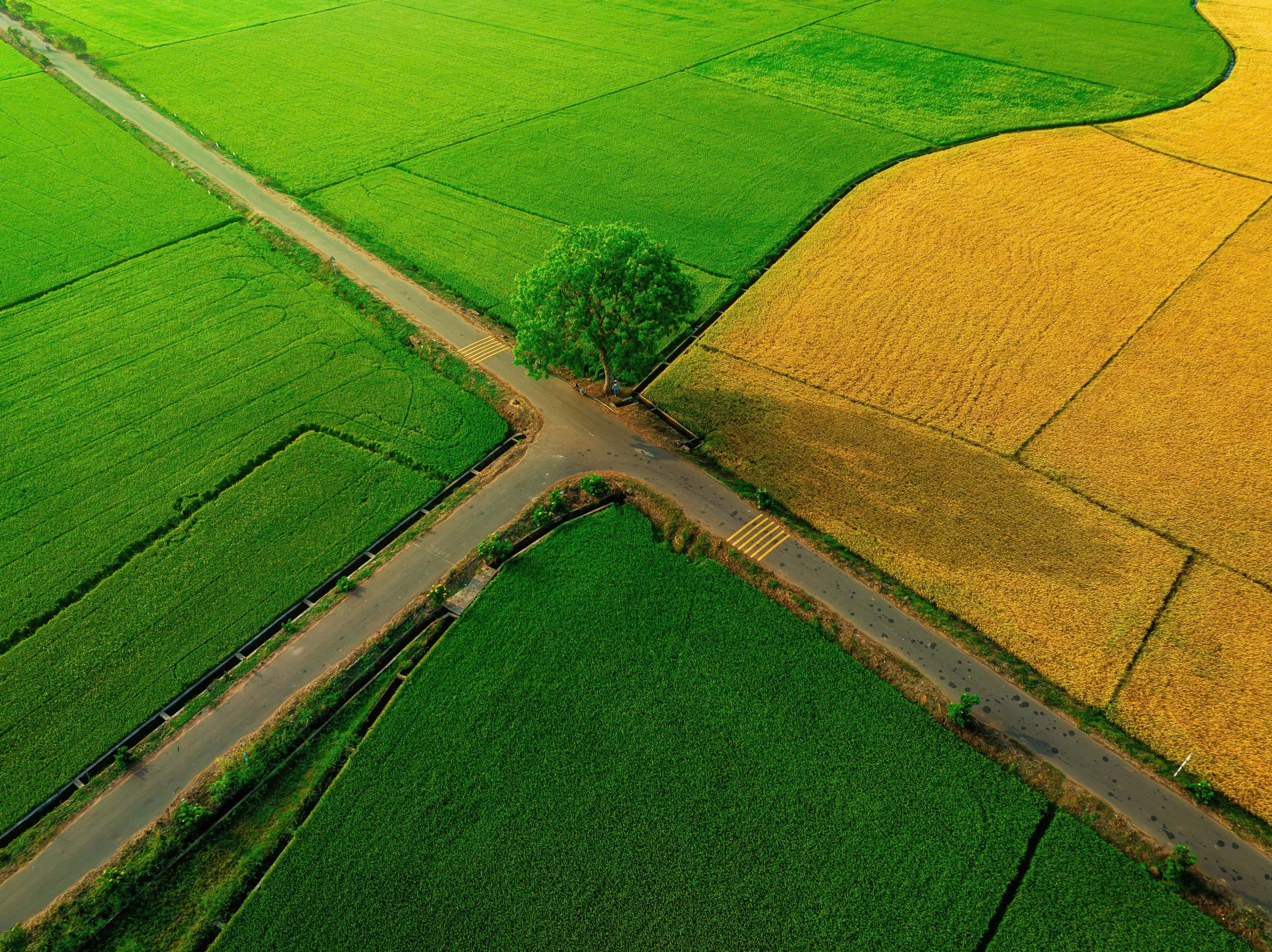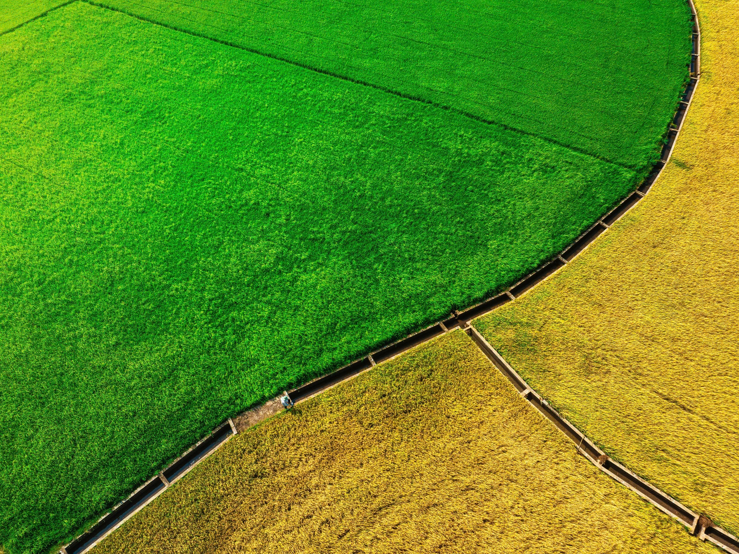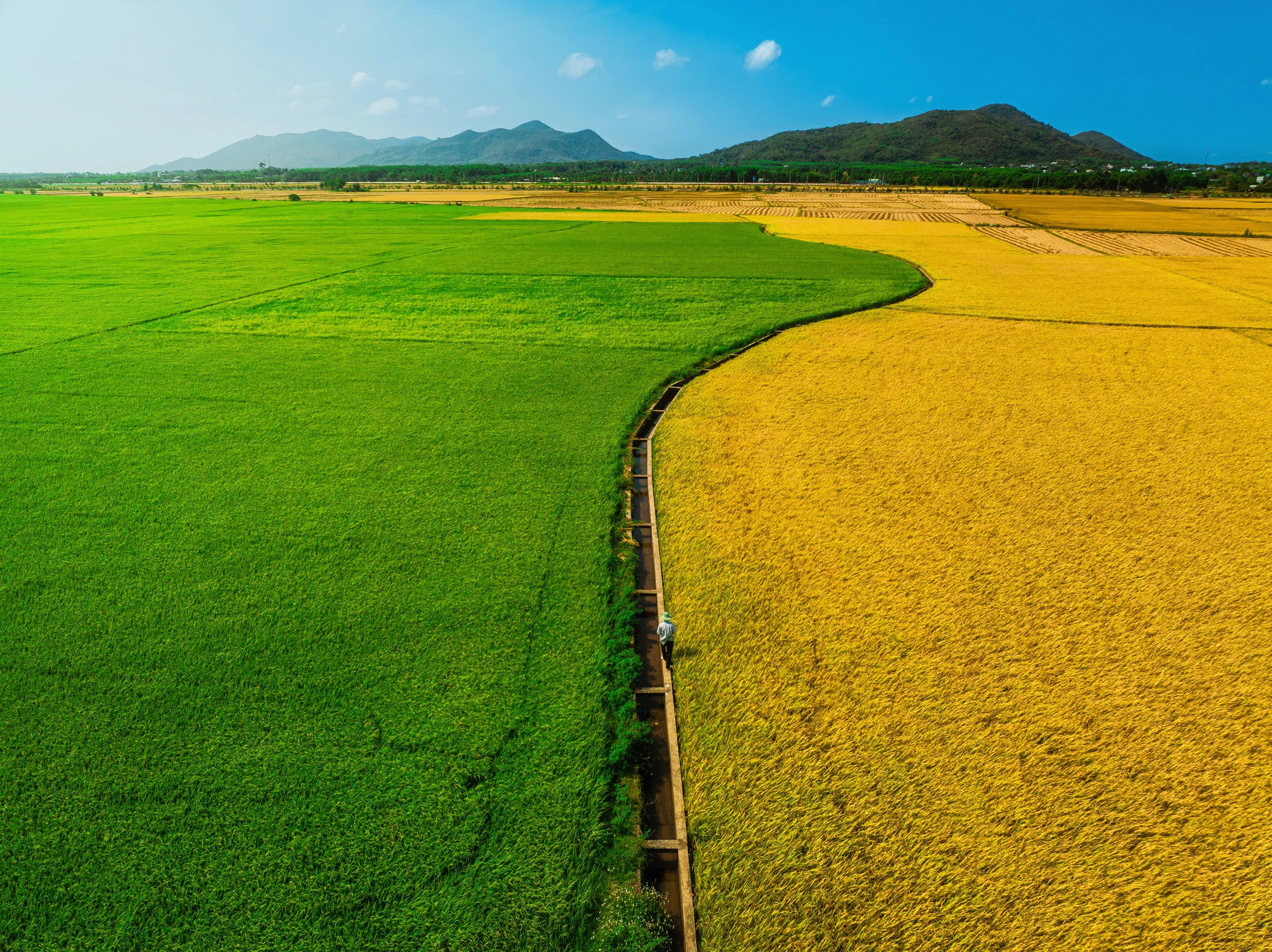 Sở dĩ cánh đồng lúa có hai màu xanh - vàng là do người dân gieo trồng theo từng thời điểm khác nhau.