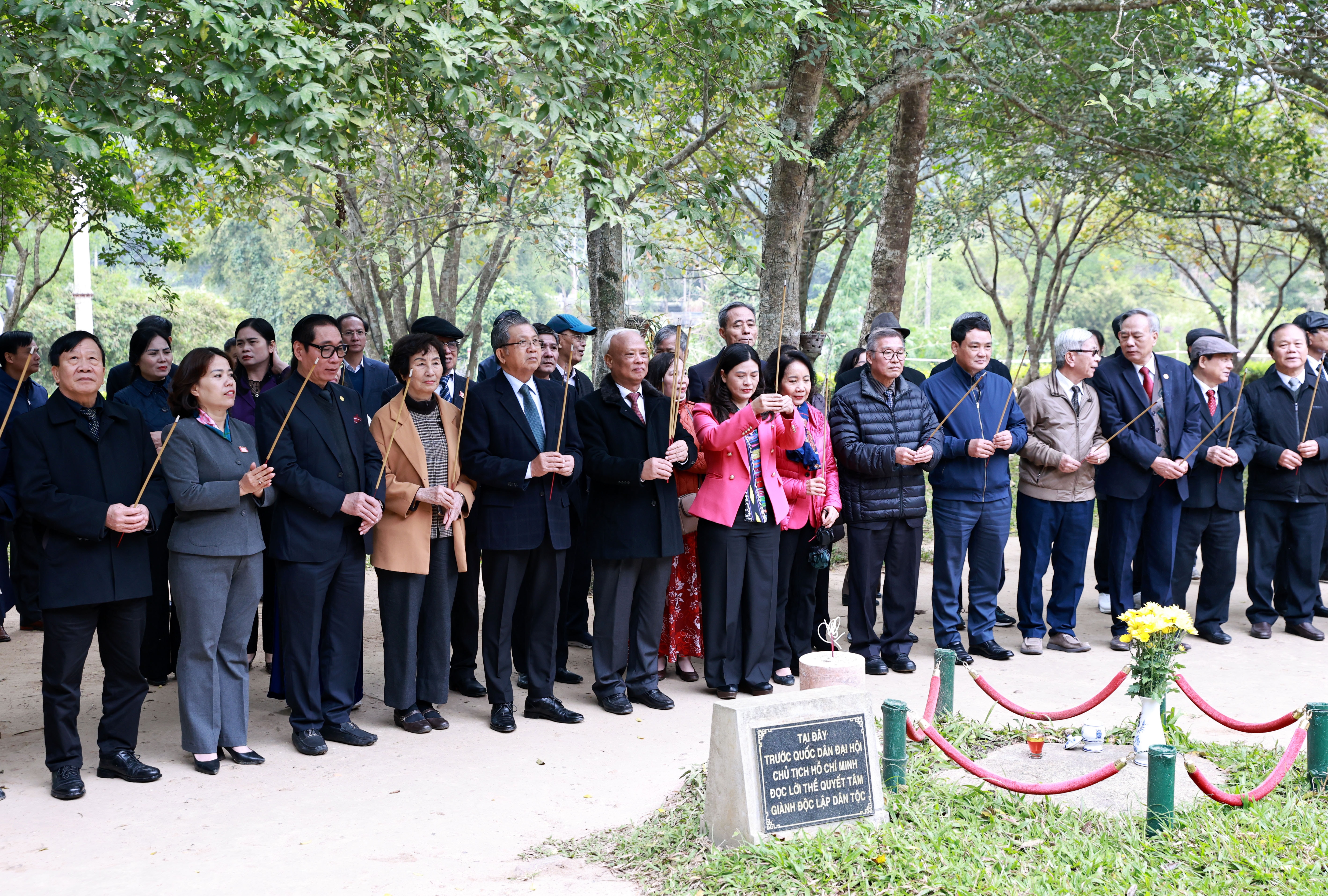 Tiếp đó, Đoàn Câu lạc bộ Cựu đại biểu Quốc hội đã đến dâng hương tại Đình Tân Trào. Nơi đây, vào ngày 16 - 17/8/1945, Quốc dân Đại hội đã họp quyết định thông qua chủ trương Tổng khởi nghĩa giành chính quyền trong cả nước, 10 chính sách lớn của Việt Minh, quy định Quốc kỳ, Quốc ca và bầu ra Ủy ban dân tộc giải phóng Việt Nam, tức Chính phủ lâm thời do Lãnh tụ Hồ Chí Minh làm Chủ tịch.