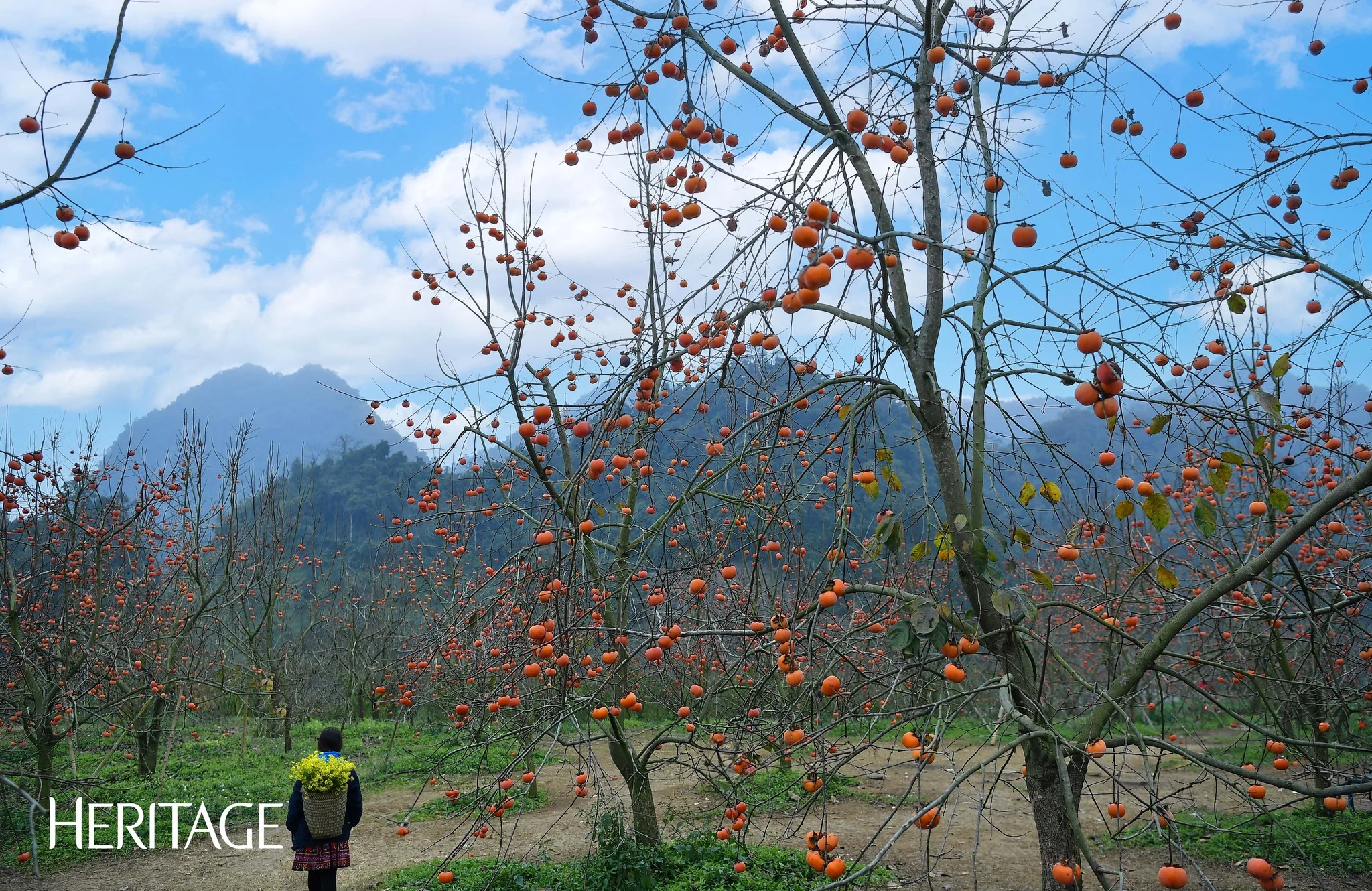Đây là lúc những quả hồng chuyển màu từ vàng sang cam đỏ rực, căng mọng trên cành,