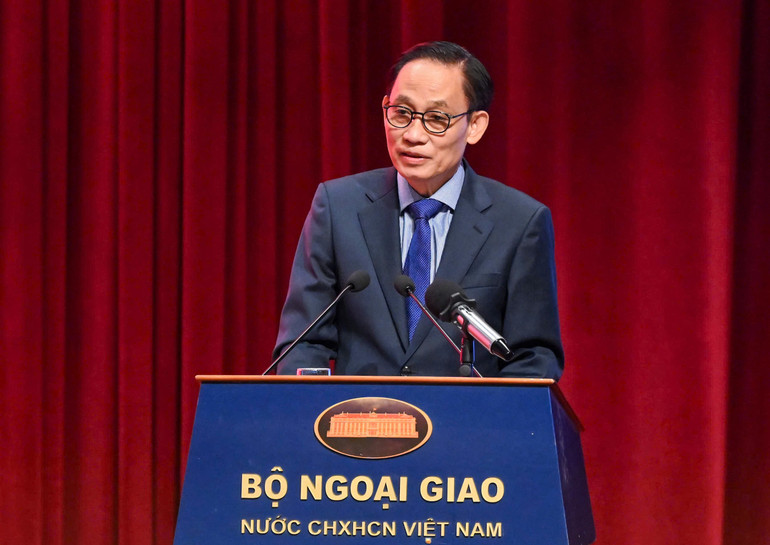 Bộ trưởng Ngoại giao Lê Hoài Trung phát biểu tại hội nghị. (Ảnh: DUY LINH)