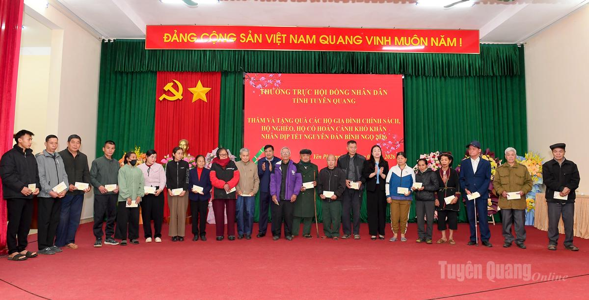 Trong không khí đầm ấm chuẩn bị đón mừng Xuân mới, Chủ tịch HĐND tỉnh Nguyễn Văn Sơn động viên, thăm hỏi và chúc các gia đình đón Tết Nguyên đán Bính Ngọ vui tươi, hạnh phúc. Đồng chí nhấn mạnh, Đảng và Nhà nước cũng như tỉnh Tuyên Quang luôn quan tâm, chăm lo đời sống vật chất, tinh thần cho nhân dân, nhất là các gia đình chính sách, người có công, người yếu thế, coi đây là nhiệm vụ của cả hệ thống chính trị. Đồng thời đề nghị cấp ủy, chính quyền địa phương tiếp tục quan tâm, chăm lo hơn nữa đến đời sống tinh thần và vật chất của nhân dân nói chung và các gia đình chính sách, người cao tuổi, những gia đình có hoàn cảnh khó khăn nói riêng; mong muốn các gia đình tiếp tục phát huy truyền thống tốt đẹp của quê hương, chấp hành tốt chủ trương, đường lối của Đảng, chính sách, pháp luật của Nhà nước, tích cực lao động sản xuất, vươn lên trong cuộc sống, cùng chung sức xây dựng quê hương Yên Phú và tỉnh Tuyên Quang ngày càng phát triển hơn nữa.