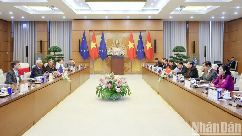 Về quan hệ Việt Nam-EU, Chủ tịch Quốc hội Trần Thanh Mẫn đánh giá cao quan hệ hai bên đã đạt được những bước tiến vượt bậc trong những năm qua. Hiệp định Thương mại tự do (EVFTA) đã và đang mang lại lợi ích thiết thực cho cả hai bên, với kim ngạch thương mại hai chiều đạt gần 74 tỷ USD trong năm 2025. EU trở thành đối tác thương mại lớn thứ 4 của Việt Nam.