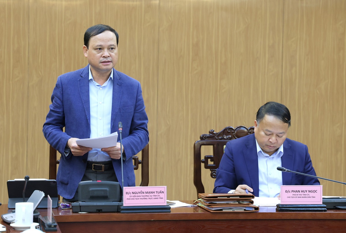 Đồng chí Phan Huy Ngọc, Phó Bí thư Tỉnh ủy, Chủ tịch UBND tỉnh chủ trì phiên họp. Đồng chủ trì có các đồng chí: Nguyễn Mạnh Tuấn, Ủy viên Ban Thường vụ Tỉnh ủy, Phó Chủ tịch Thường trực UBND tỉnh; Vương Ngọc Hà, Ủy viên Ban Thường vụ Tỉnh ủy, Phó Chủ tịch UBND tỉnh. Dự họp có lãnh đạo các sở, ngành, đơn vị liên quan.