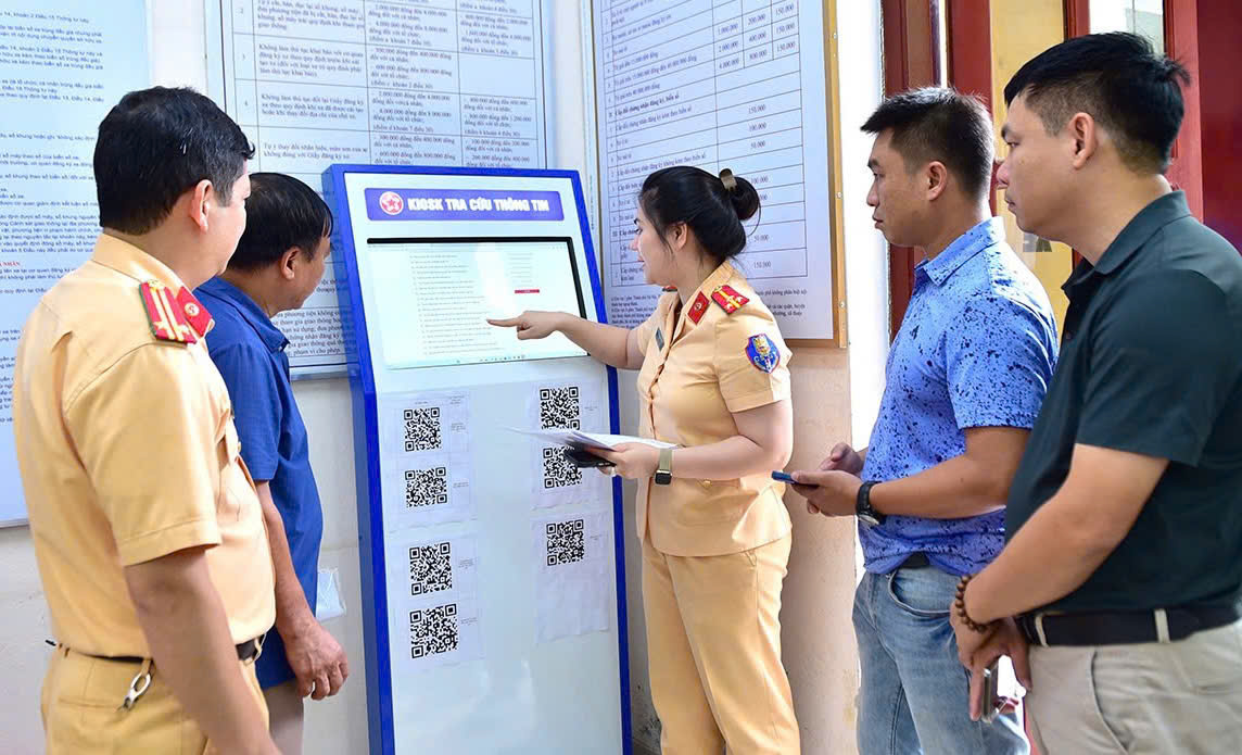 Phòng Cảnh sát giao thông, Công an tỉnh tuyên truyền, hướng dẫn người dân nộp hồ sơ TTHC trên cổng Dịch vụ công trực tuyến.