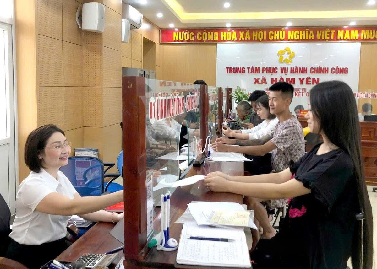 Người dân giải quyết TTHC tại Trung tâm Phục vụ hành chính công xã Hàm Yên.
