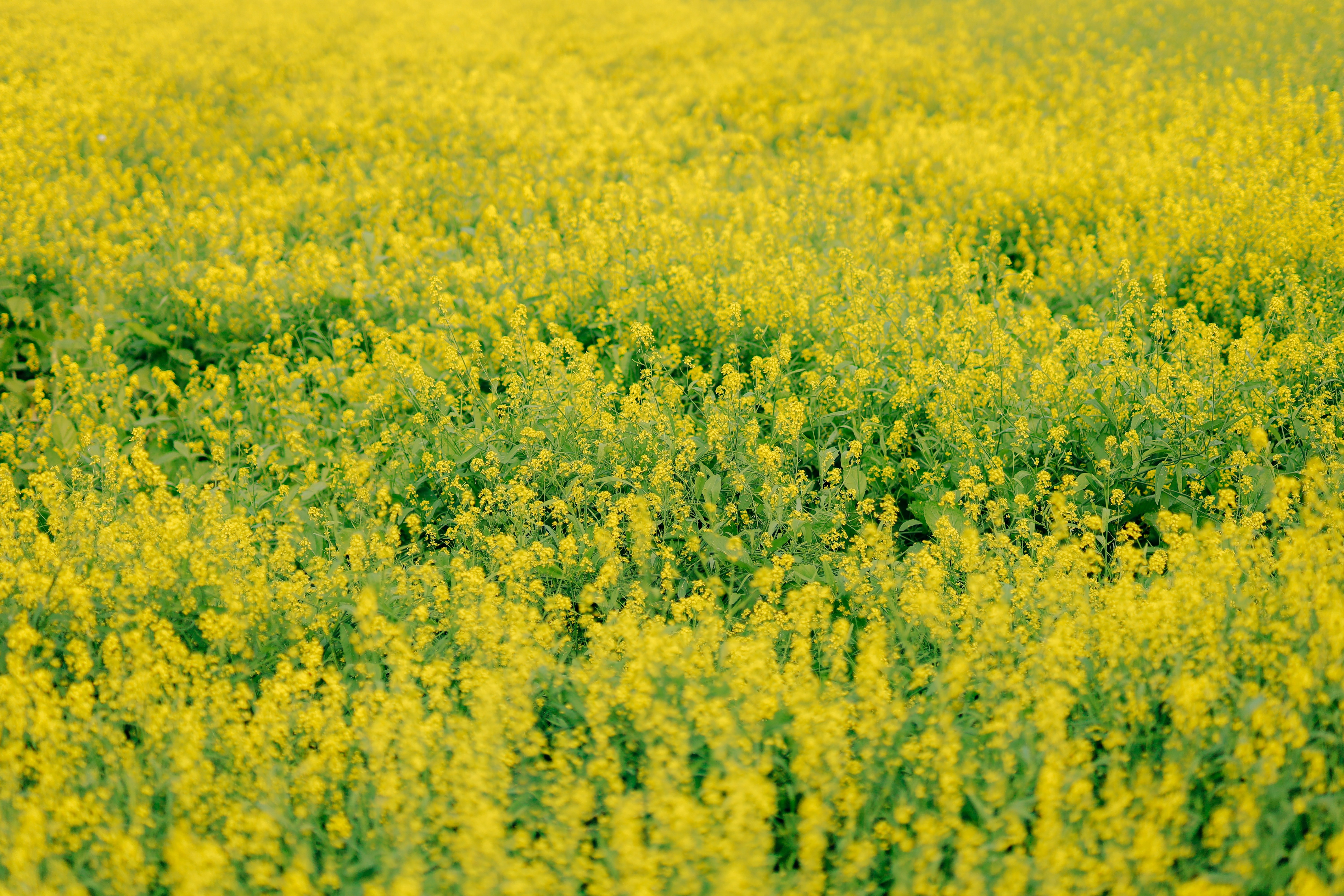 từng ruộng hoa cải nở rộ vàng ươm giữa cánh đồng. Đây là hoa cải vàng, hay còn gọi cải dầu,