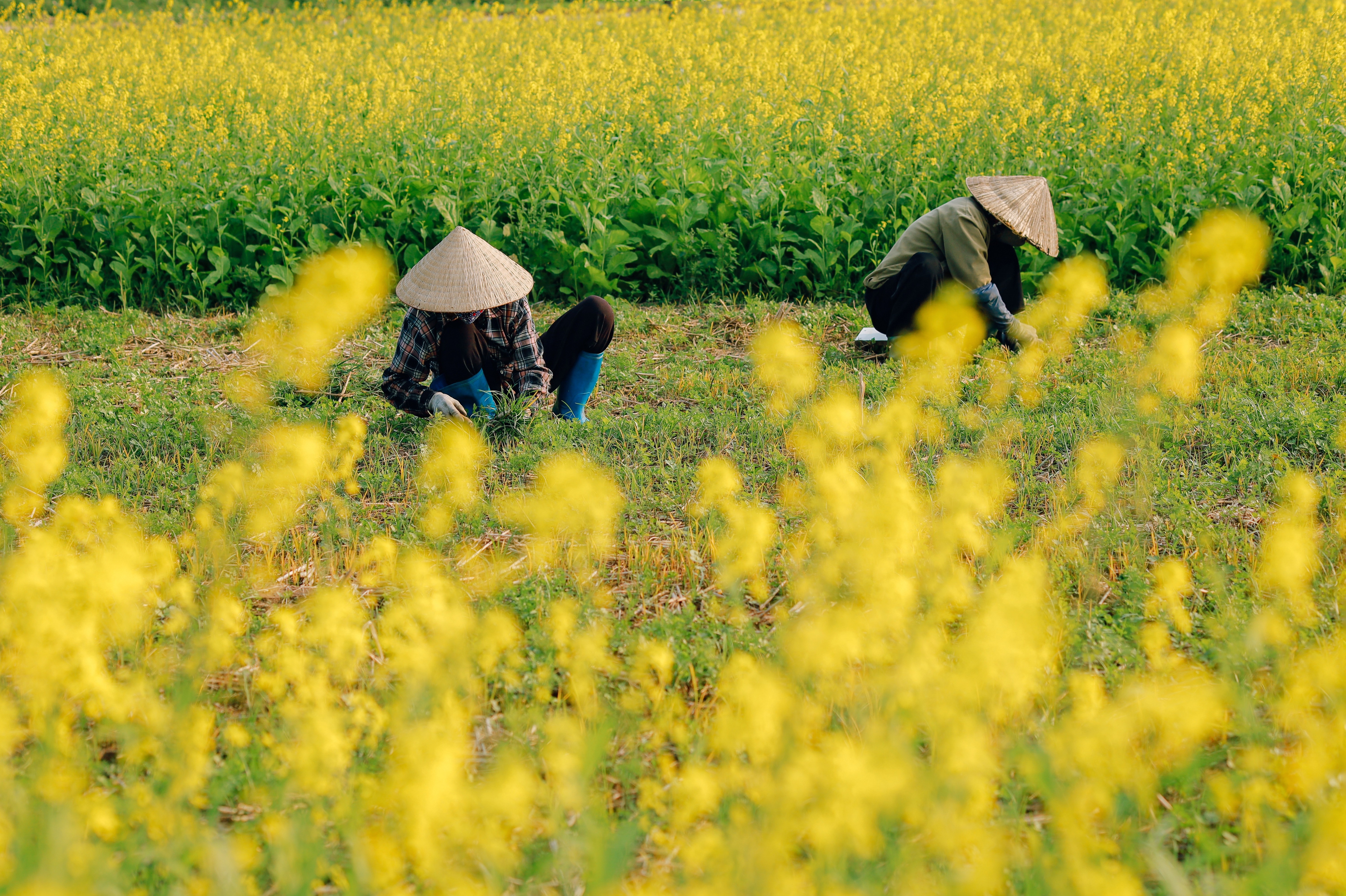 Người dân địa phương trồng cải vàng để thu hoạch hạt giống và che phủ đất trong mùa đông.