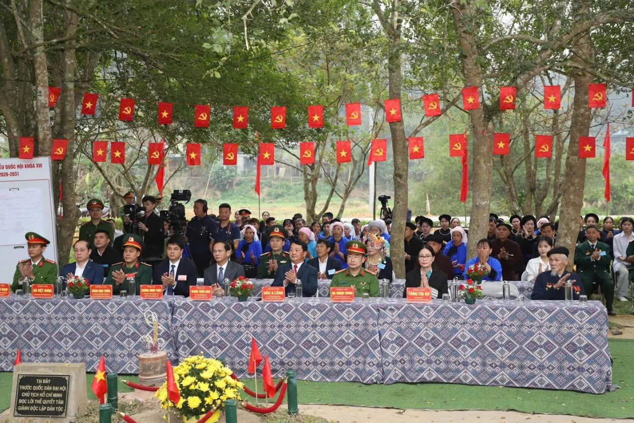 Đồng chí Bí thư Tỉnh ủy Hầu A Lềnh dự Lễ khai mạc và bỏ phiếu tại Khu vực bầu cử số 1 (Đình Tân Trào) xã Tân Trào