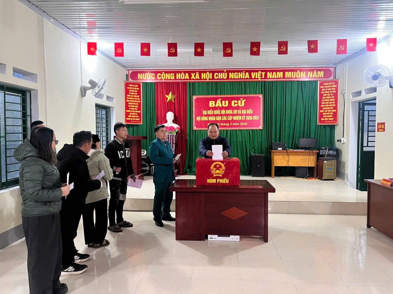 Đến 19 giờ 00 phút, ngày 15-3-2026, việc bỏ phiếu bầu cử đại biểu Quốc hội khóa XVI và đại biểu Hội đồng nhân dân các cấp nhiệm kỳ 2026-2031 trên địa bàn tỉnh đã kết thúc theo đúng thời gian quy định.