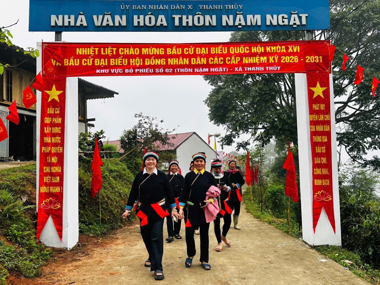 Cử tri thôn Nặm Ngặt, xã Thanh Thuỷ phấn khởi ra về sau khi thực hiện quyền bầu cử