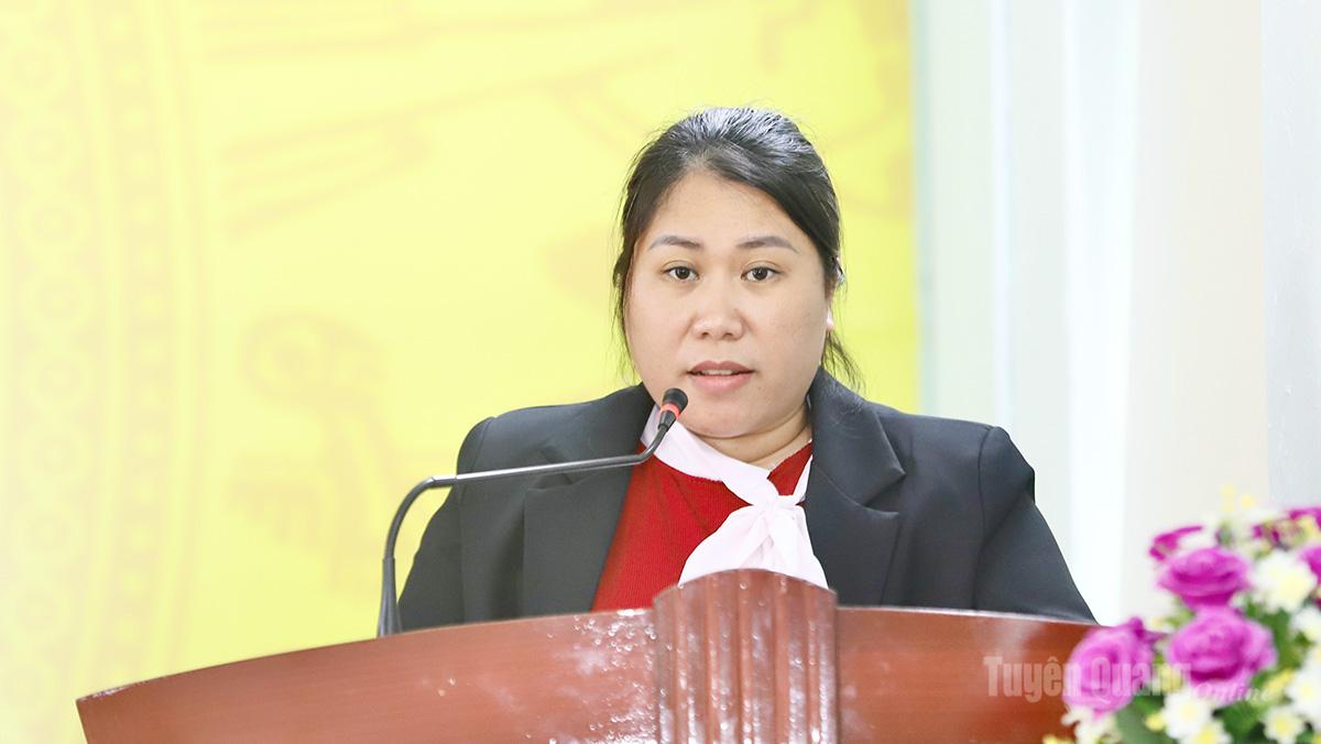 Ứng cử viên Hoàng Thị Xạ, Phó Chủ tịch Ủy ban MTTQ, Chủ tịch Hội Nông dân xã Tùng Bá