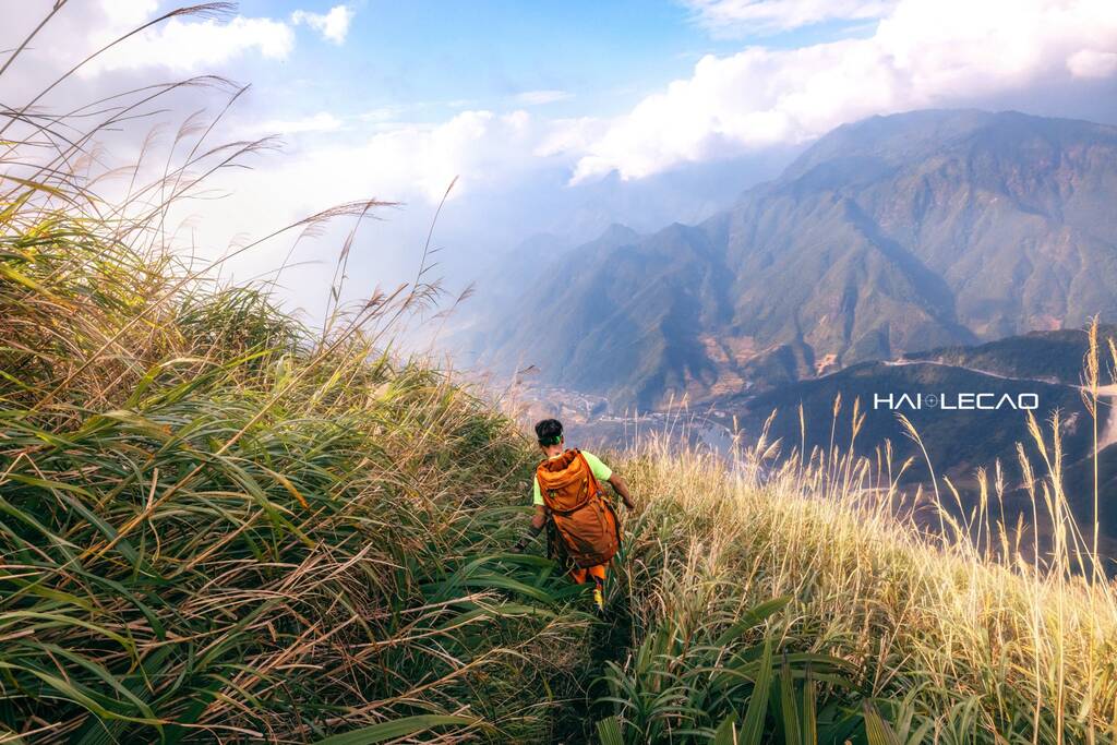 Triền núi phủ kín cỏ dại mọc đầy hai bên ven đường trekking