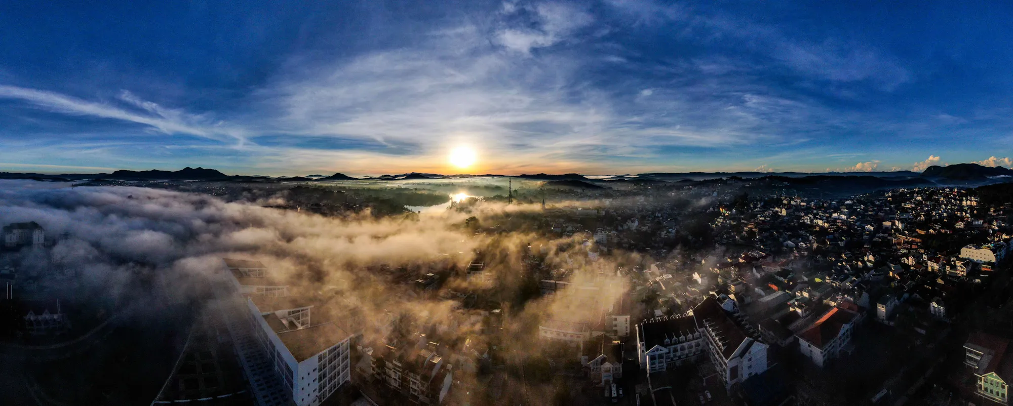 Chuyên trang du lịch quốc tế mô tả: "Bảy trải nghiệm buổi sớm trên thế giới, từ biển mây ở Việt Nam đến đầm muối ở Pháp hay những bánh phô mai ra đời tại Ý—mang đến nhiều hơn một cảnh bình minh. Chúng cho thấy phần lớn thế giới thức dậy trước chúng ta như thế nào. Thế nên, hãy dậy thật sớm để nhìn cách con người ở khắp nơi trên thế giới bắt đầu một ngày mới". Trong ảnh, biển mây bao trùm phố núi Đà Lạt lúc rạng sáng . Ảnh: PHAN TẤN ĐẠT