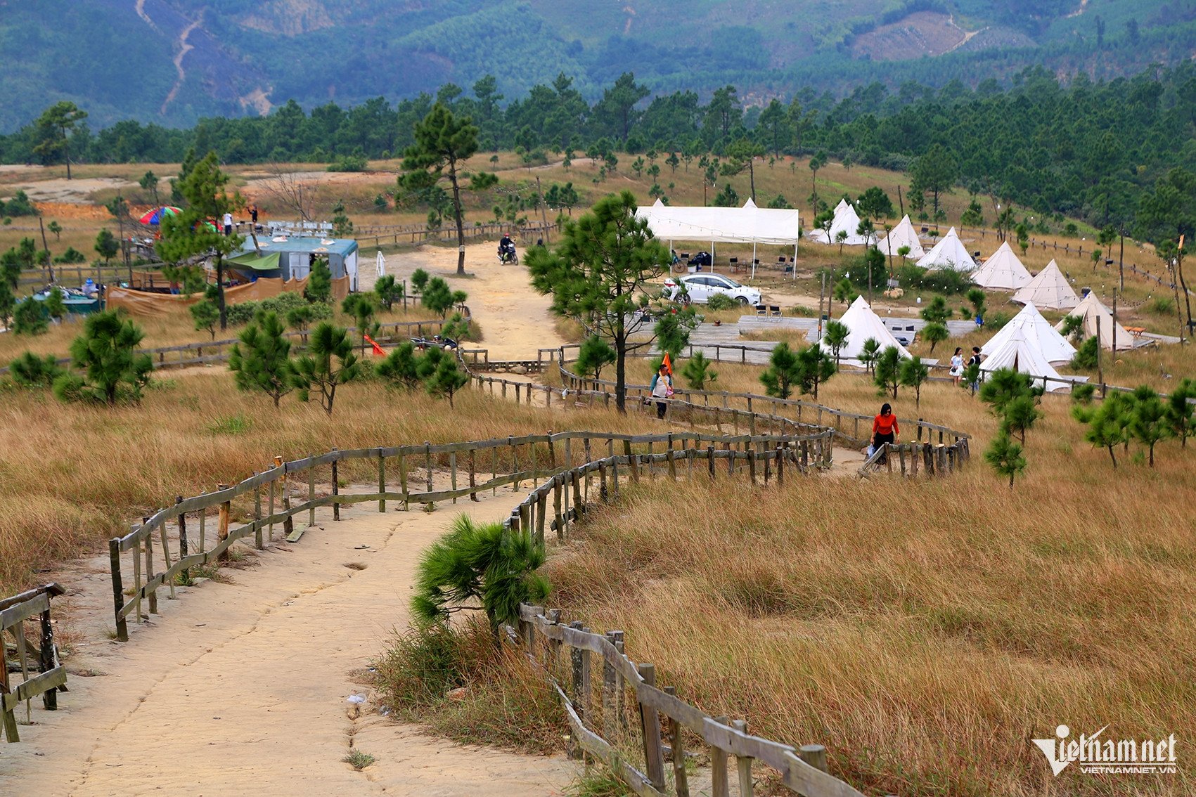 Những thảm cỏ vàng óng, thông 'cô đơn' len lỏi tạo khung cảnh đẹp nao lòng