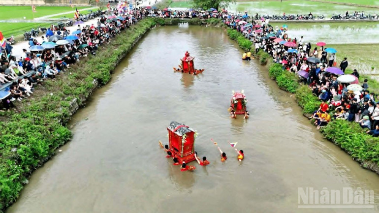 Màn rước kiệu dưới nước được diễn ra vào ngày mồng 9 tháng Giêng hằng năm