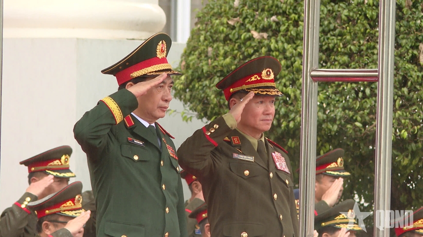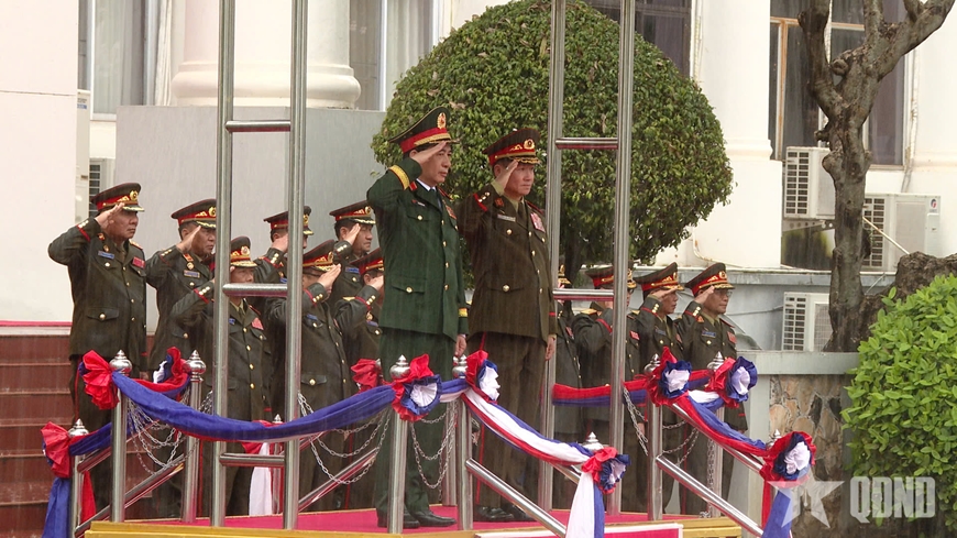 Thượng tướng Khamliang Outhakaysone chủ trì lễ đón Đại tướng Phan Văn Giang.