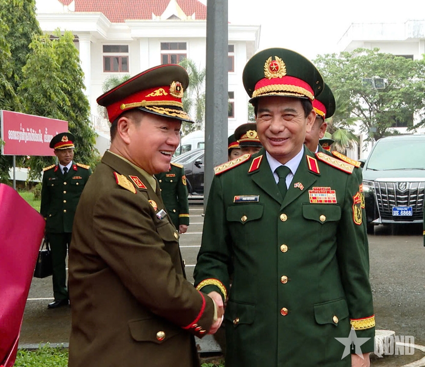 Đại tướng Phan Văn Giang bày tỏ vui mừng gặp lại Thượng tướng Khamliang Outhakaysone; chúc mừng việc tổ chức thành công Đại hội đại biểu Đảng bộ Quân đội nhân dân Lào nhiệm kỳ 2025-2030; tin tưởng rằng, dưới sự lãnh đạo sáng suốt của Đảng Nhân dân cách mạng Lào và Ban Thường vụ Đảng ủy Bộ Quốc phòng Lào, Quân đội nhân dân Lào sẽ tiếp tục đạt nhiều thành tựu to lớn hơn nữa, đóng góp tích cực vào công cuộc xây dựng, bảo vệ Tổ quốc Lào và vun đắp mối quan hệ hữu nghị vĩ đại Việt Nam - Lào.