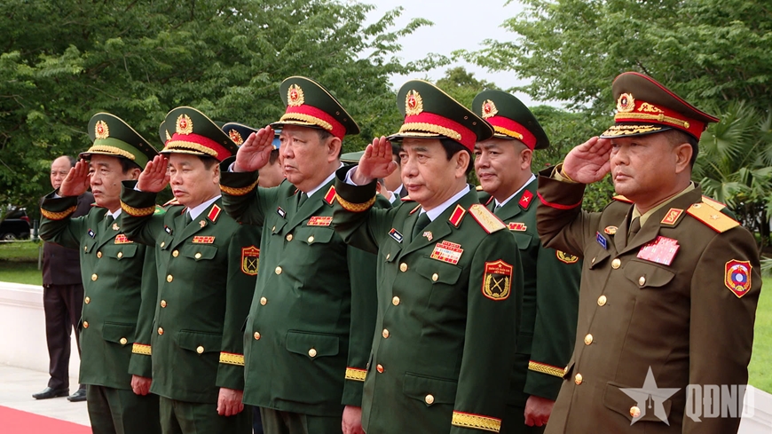 Đại tướng Phan Văn Giang dẫn đầu đoàn đại biểu cấp cao Bộ Quốc phòng Việt Nam dâng hương, đặt hoa tại Đài tưởng niệm các Anh hùng liệt sĩ tại Thủ đô Vientiane, Lào.