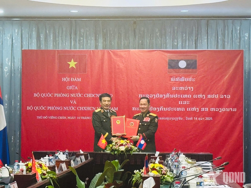 Tại hội đàm, Đại tướng Phan Văn Giang và Thượng tướng Khamliang Outhakaysone vui mừng nhận thấy, các nội dung trong Nghị định thư hợp tác giai đoạn 2025-2029 và Kế hoạch hợp tác năm 2025 đã được cơ quan hai bên phối hợp, triển khai hiệu quả, thực chất trên các mặt, như phối hợp chặt chẽ, làm tốt công tác tuyên truyền, giáo dục về mối quan hệ hữu nghị vĩ đại Việt Nam - Lào; trao đổi thông tin, tình hình, qua đó tham mưu hiệu quả với lãnh đạo Đảng, Nhà nước về những vấn đề chiến lược tác động đến quốc phòng, an ninh mỗi nước; hợp tác quân, binh chủng, hậu cần, kỹ thuật, công nghiệp quốc phòng được quan tâm thúc đẩy.