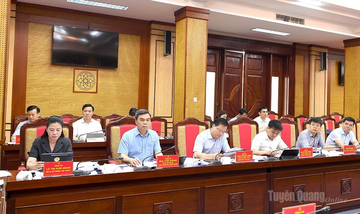 Thường trực Tỉnh ủy cũng cho ý kiến đối với các báo cáo, tờ trình: Dự thảo Chương trình hành động của Ban Chấp hành Đảng bộ tỉnh thực hiện Nghị quyết số 79 của Bộ Chính trị về phát triển kinh tế Nhà nước; dự thảo Chương trình hành động của Ban Thường vụ Tỉnh ủy thực hiện Nghị quyết số 80 của Bộ Chính trị về phát triển văn hóa Việt Nam; dự thảo Nghị quyết của Ban Thường vụ Tỉnh ủy về xây dựng và phát triển con người Tuyên Quang toàn diện về đạo đức, nhân cách, trí tuệ, thể lực, thẩm mỹ đáp ứng yêu cầu phát triển bền vững, giai đoạn 2026 - 2030.