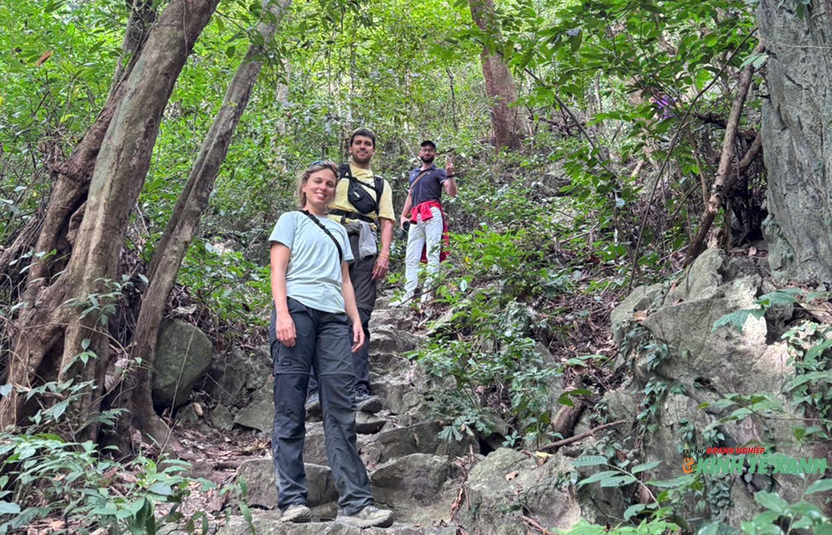 Du khách nước ngoài thăm quan, trải nghiệm tại Vườn quốc gia Cát Bà (Ảnh: Thái Phan).