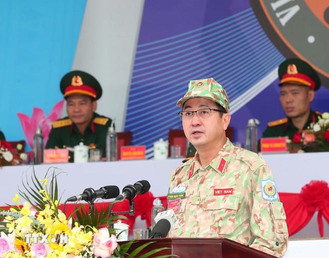 Thiếu tướng Phạm Mạnh Thắng, Cục trưởng Cục Gìn giữ hòa bình Việt Nam phát biểu. Ảnh: TTXVN