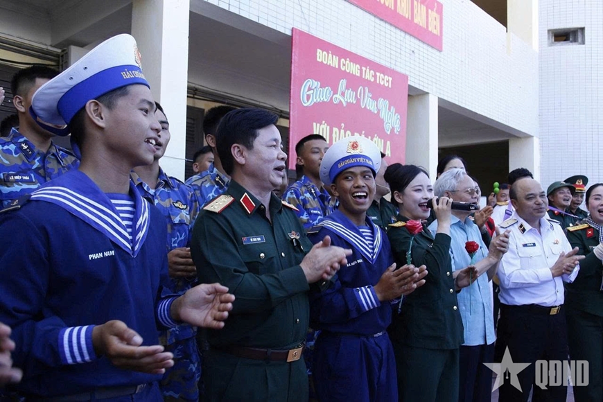Thủ trưởng đoàn công tác giao lưu văn nghệ với cán bộ, chiến sĩ đảo Đá Lớn A